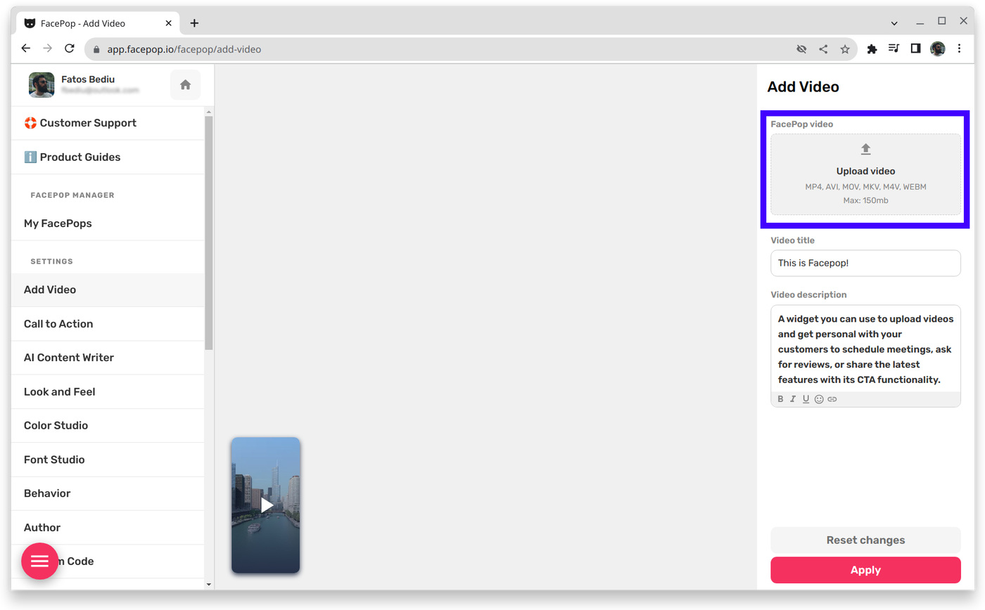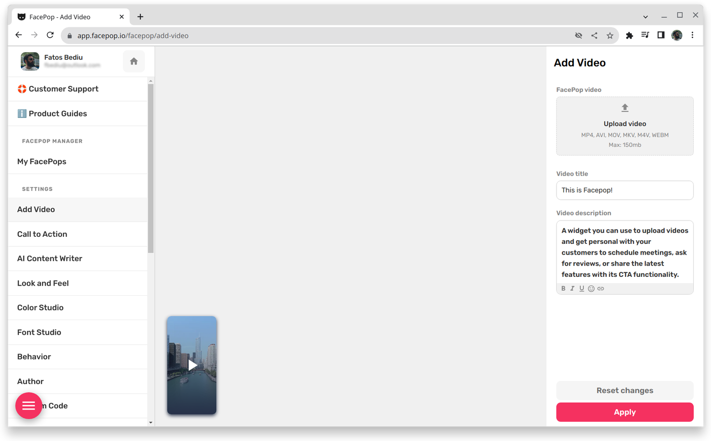 Step 4 Once done, hit the "Apply" button, and Voila! Your widget should now show the video you've chosen.